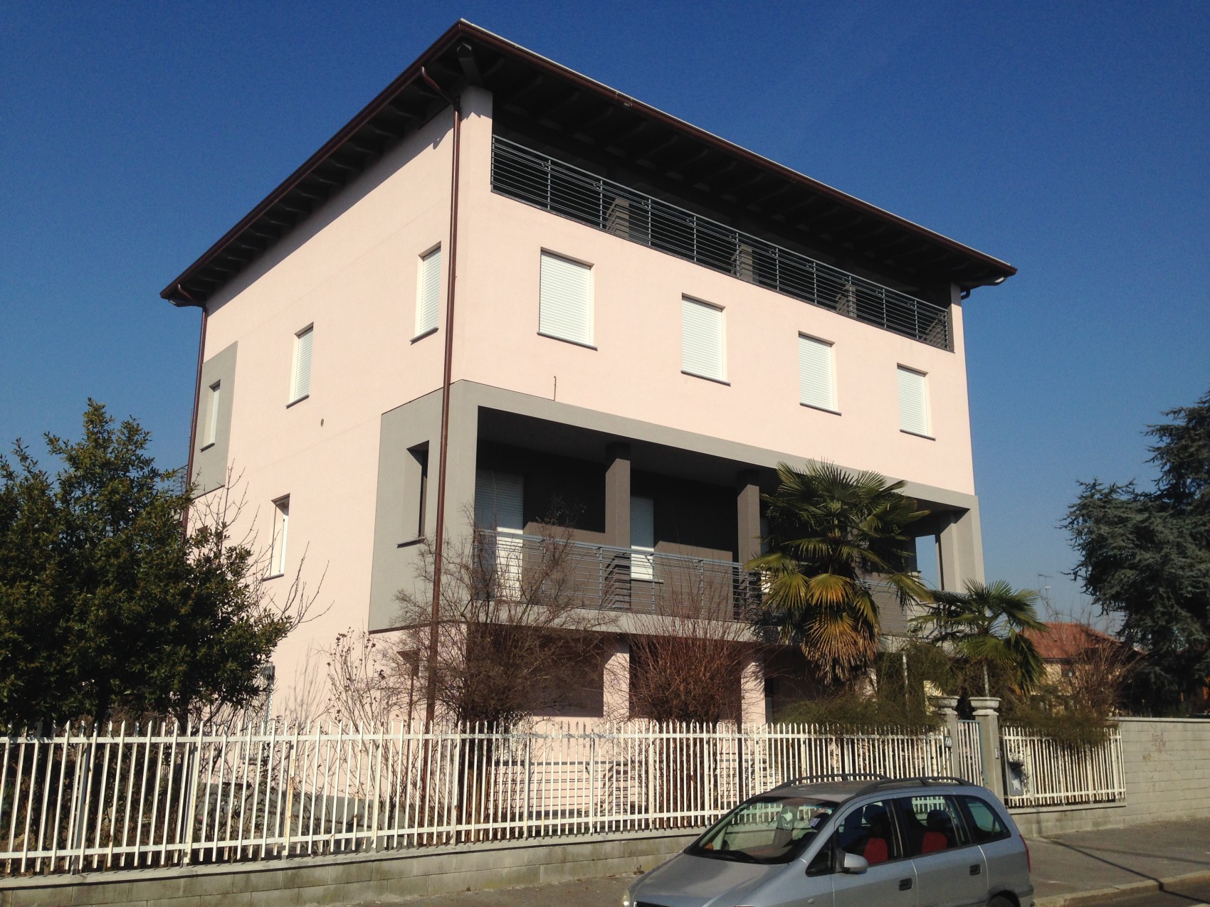 Il progetto ha riguardato l’ampliamento volumetrico fino a saturare la superficie coperta prevista dagli indici urbanistici, tramite un sopralzo di un piano di dimensione maggiore rispetto ai piani sottostanti esistenti che, attraverso la realizzazione di superfici accessorie quali balconi e portici, si allineano al volume soprastante ottenendo un manufatto compatto.